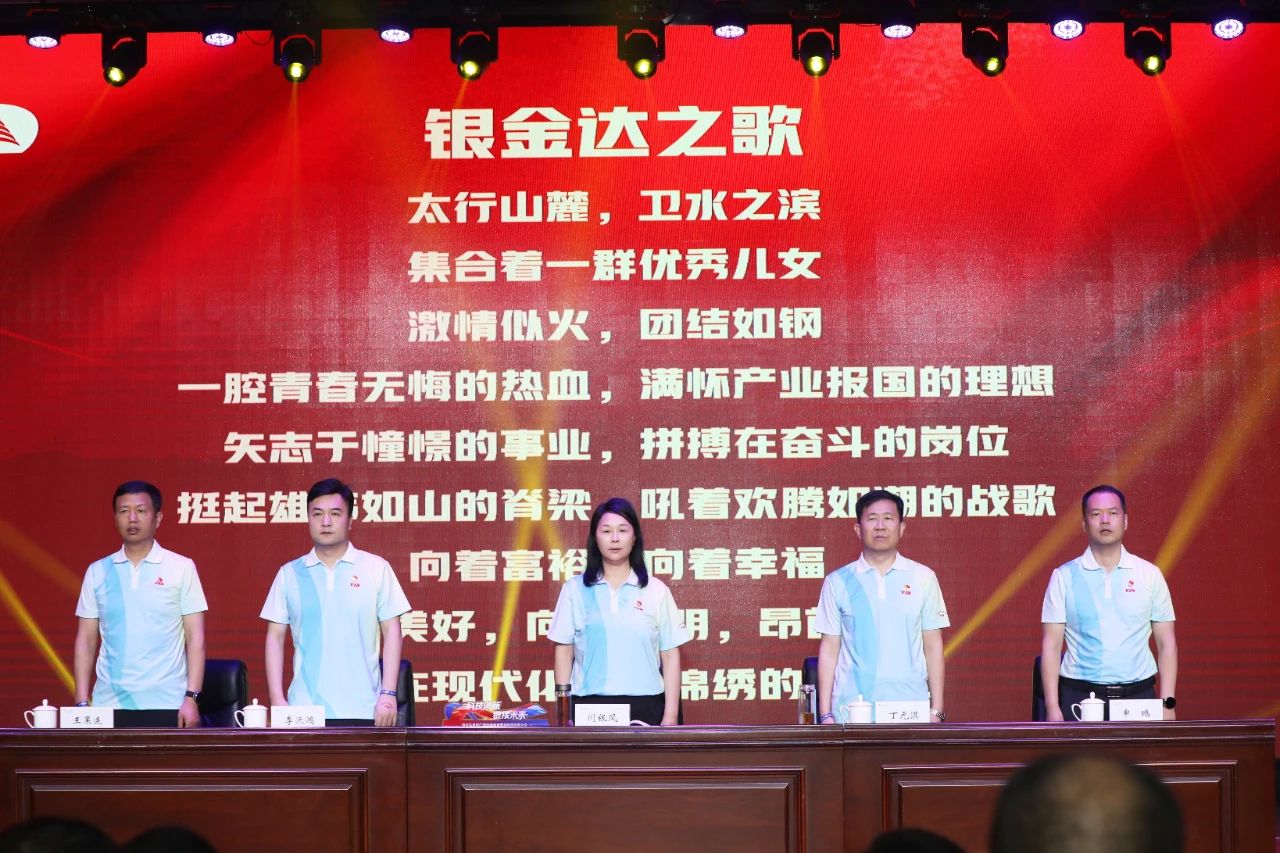 上午9:00,在唐莊干部教育學院主會場,大會在莊嚴的國歌聲中正式拉開帷幕。全體與會人員肅立合唱,愛國情懷與企業(yè)擔當在旋律中交融。隨后,《銀金達之歌》的激昂旋律響起,唱出了銀金達人三十一年如一日的堅守與豪情。